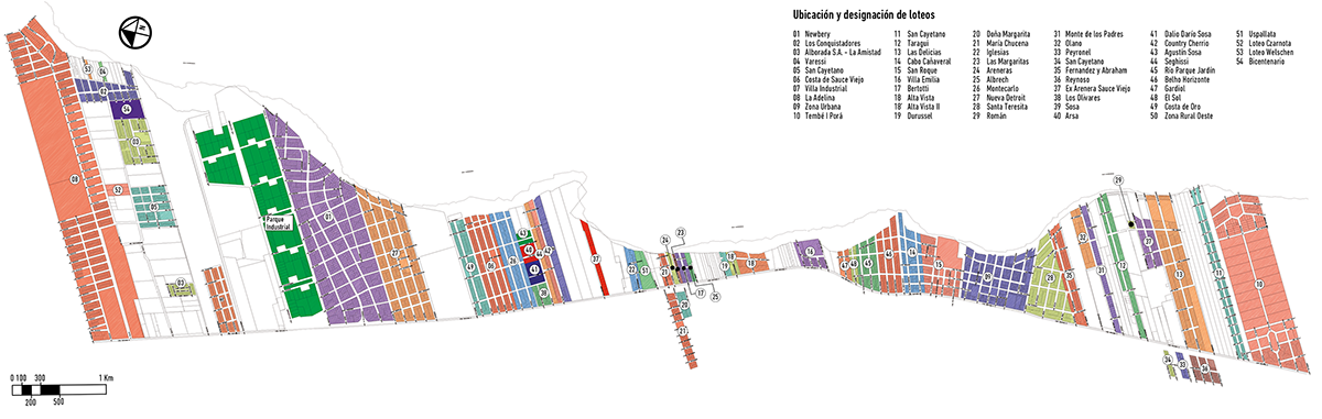La derogación de la Ordenanza Municipal de 1939, que regulaba el loteamiento y establecía una serie de requisitos para la urbanización23, inició un nuevo periodo caracterizado por el loteo, la venta de terrenos y la ocupación paulatina con residencias de fin de semana. Este proceso estuvo acompañado de una nueva valorización del área, como espacio de ocio y descanso. Dicha derogación creó un vacío legal que habilitó un proceso de subdivisión de las propiedades —hasta ese momento rurales— por la vía de la excepción normativa. Si bien no se han podido relevar exhaustivamente las subdivisiones en este periodo, ya que el Archivo de Catastro de la Municipalidad de Santa Fe no suministra la información al público24, pudo verificarse el proceso a través de una serie de planos confeccionados por organismos oficiales25, así como también realizar un muestreo a través de planos de mensura, unificación y subdivisión municipal, a los cuales se ha tenido acceso. Pudo constatarse que el periodo de mayor intensidad en subdivisiones (en lo que hoy se conoce como Villa California26 tuvo lugar entre 1970 y la primera mitad de la década de los ochenta. A partir de entrevistas realizadas a algunos agentes del sector inmobiliario, pudo extraerse que las tierras se compraron a muy bajo valor en la década de los sesenta, bajo la figura catastral de tierra rural y luego fueron subdivididas e incorporadas al mercado inmobiliario bajo la figura de tierra suburbana, con un valor diferencial27.