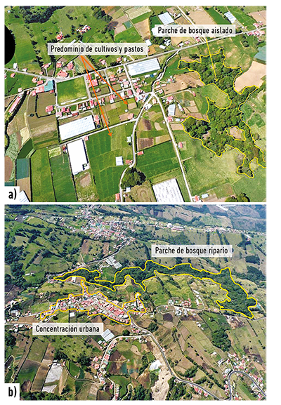 En las partes bajas el bosque se localiza principalmente en las orillas de los cauces, mientras que en las partes altas los parches, además de estar a lo largo de la red hídrica, también se presentan fuera de esta y con mayores dimensiones. Esto obedece a que en las partes bajas la topografía es menos abrupta y existen más y mejores vías de comunicación para el desarrollo de las actividades económicas, por lo que hay mayor presión en el uso de la tierra y son menores las oportunidades para adquirir terrenos que se dediquen a la regeneración.