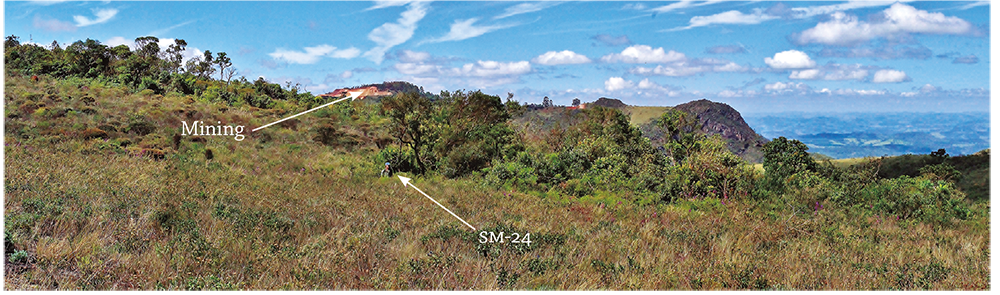 Although they are still inserted in fragments with vegetal cover, the environmental stability of such caves may be compromised due to their great proximity to impacted areas. Figure 5 shows the location of cave VL-53, inserted in a herbaceous patch close a mining plant.