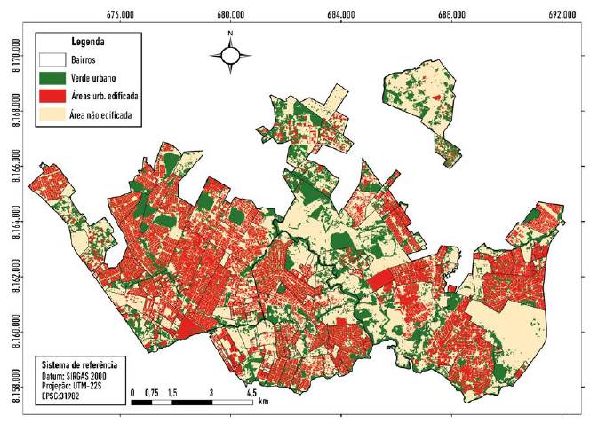 Palavras-chave: espaço urbanoespaço urbano,índice de áreas verdesíndice de áreas verdes,mapeamentomapeamento,qualidade de vidaqualidade de vida,verde urbanoverde urbano.