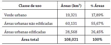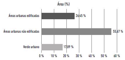 Na Figura 4, é possível observar o percentual de cada classe de uso e ocupação do solo, mapeadas pela técnica de processamento digital de imagens. A referida figura evidencia o predomínio da classe de áreas urbanas não edificadas, o que corrobora com as afirmativas de Moraes (2003), que já revelava preocupações com essas áreas de "terras de engorda".