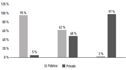 La asistencia de los integrantes de los hogares encuestados a establecimientos de educación básica tiene un claro patrón de diferenciación. En efecto, mientras que los integrantes de los hogares encuestados que residen en sectores con ICVB bajo asisten en más del 95% a colegios públicos, los integrantes de hogares en sectores con ICVB alto asistente en más del 95% a colegios privados (Figura 11).