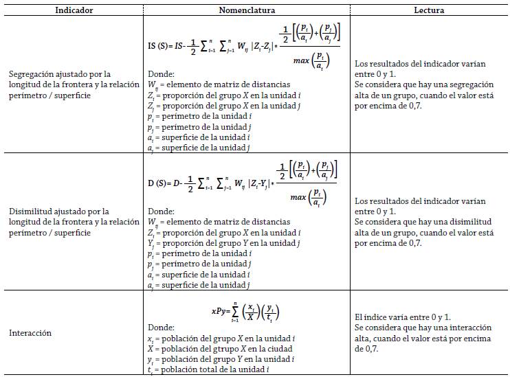 Al respecto de la estimación de indicadores de segregación, estos no se deben utilizar como simples medidas estadísticas, dado que es necesario tener en cuenta la configuración espacial de las unidades de medida. Así mismo, las técnicas multivariadas y las técnicas predictivas requieren de validación de supuestos espaciales para poder ser utilizadas en los análisis de segregación en la ciudad.