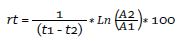 [Ecuación 1.]Donde A1 y A2 son las superficies en hectáreas ocupadas por una determinada cobertura (expresadas como su logaritmo natural), para el tiempo t1 (tiempo inicial) y t2 (tiempo final) del análisis. Por ejemplo para el periodo 1992 y 2000, A1 y A2 corresponden a las hectáreas ocupadas por la cobertura de bosques en 1992 y 2000, respectivamente, y así sucesivamente para cada cobertura.