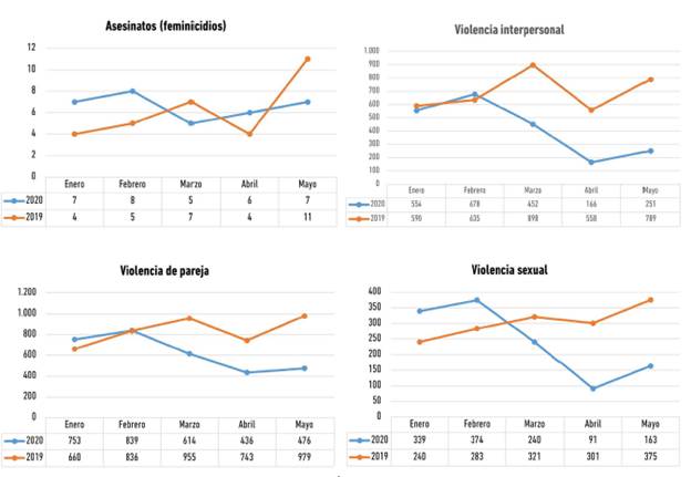 Lo primero que se logra evidenciar con este estudio es el reto intrincado de determinar de manera focalizada los índices y elementos que influyen en la violencia contra la mujer. Se verifica teóricamente que no se pueden clasificar las denuncias de acuerdo con las condiciones sociales y económicas, ya que las mujeres suelen ser víctimas de cualquier tipo de violencia, sin importar las situaciones en las que viven o su posición social, por más alta que sea. Se puede asegurar que hacer estos estudios ayuda a conocer el comportamiento de las violencias y los factores que pueden hacer que se desencadenen estos hechos, en especial cuando se presenta una emergencia sanitaria con activación de medidas de confinamiento obligatorio, para reducir contagios y salvaguardar la vida, pero no se contempla dentro de las políticas públicas de emergencia el peligro que esto acarrea para las mujeres expuestas a violencia dentro de sus hogares.