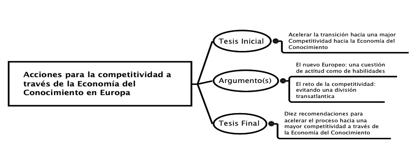El mensaje de ERT Acciones para la competitividad a través de la Economía del Conocimiento en Europa (2001) se construye a nivel macro con una secuencia argumentativa que marca la función epistémica del discurso: