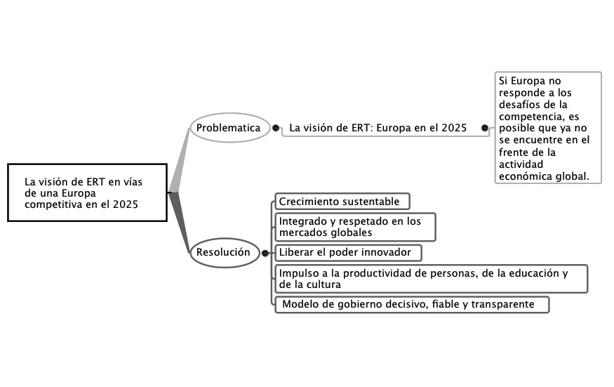 Como una organización cuya prioridad clave es la de fortalecer la competitividad europea, el ERT está apoyando afectuosamente la estrategia de Lisboa del Consejo Europeo. Sin embargo, teniendo en cuenta la crisis técnica y las necesidades urgentes de la ‘nueva Europa’ el ERT opina que es necesario un enfoque más riguroso y un progreso más acelerado en cuatro tareas fundamentalmente importantes que estuvieron presentes en las conclusiones de Lisboa, con varios grados de énfasis. Estos cometidos son: