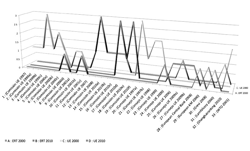 Podemos percibir claramente que este texto ha sido construido a partir de varios textos previos que aparecen en los informes, decisiones y recomendaciones tanto del Consejo como de la Comisión. El reconocimiento de estas referencias intertextuales nos posibilita la interpretación del texto dentro de un continuum político que delinea la revolución permanente del tecnocorporativismo europeo, situando históricamente (continuum histórico) acontecimientos que −como hemos visto− de otro modo quedarían en el plano descriptivo como “eventos naturales”. Vemos cómo unas referencias explícitas conforman un continuum histórico según la lógica de la repetición de textos previos en el texto principal, dado que se recalcan decisiones políticas ya adoptadas para que sean reforzadas y/o reformadas con el objetivo de obtener un resultado performativo en la nueva agenda política que se propone: