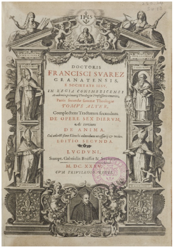 Un año después, en 1621, aparecían publicados en un mismo volumen, impreso en Lyon, el DOSD y el De anima11. Con estos escritos, tras el estudio de las criaturas inmateriales (los ángeles), proseguía Suárez su investigación teológica, ocupándose ahora de las criaturas materiales, especialmente el hombre. El DOSD, en concreto, es un comentario teológico de los tres primeros capítulos del Génesis. En el prefacio Ad lectores decía Álvarez: “El religiosísimo y sapientísimo Doctor Suárez nos ha dejado también esta obra, cuidadosísimamente elaborada, sobre el autor del mundo y la creación de los primeros padres, de su estado feliz y de su infeliz caída”12.