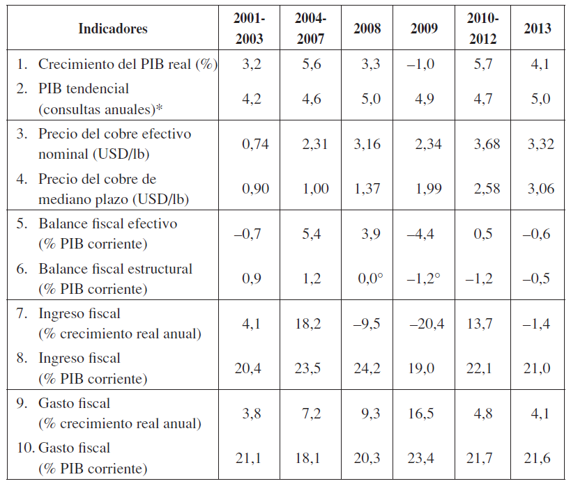Gracias a ese progreso fiscal formal y a un alza notable del precio del cobre desde 2004, la crisis global encontró a Chile con un Ministerio de Hacienda que se había convertido en acreedor neto del resto del mundo y con un cuantioso saldo líquido en sus fondos de estabilización, aspectos favorables de crucial importancia para ejecutar efectivas políticas nacionales contracíclicas.