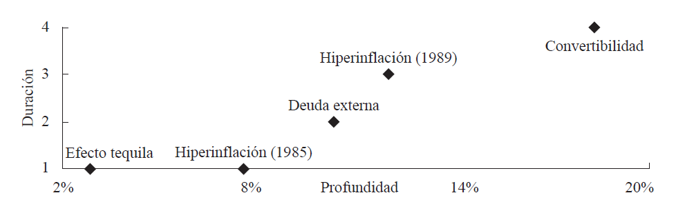 Por su parte, la crisis económica y política a la que se enfrentó De la Rúa a comienzos del siglo XXI, sumada a las medidas adoptadas por su ministro de Economía, Luis Machinea, para resolver los problemas fiscales, caso de la reducción de los salarios, contribuyeron a deslegitimar al Gobierno. Argentina se encontraba en una encrucijada al tratar de mantener la confianza internacional y defender la convertibilidad, considerando que no contaba con los elementos estructurales para hacerlo. Además, la renuncia del vicepresidente Álvarez a finales del año 2000 significó la descomposición de la Alianza y generó el cierre del mercado de la deuda, por el incremento del riesgo que la inestabilidad política suponía para los prestamistas, de modo que: