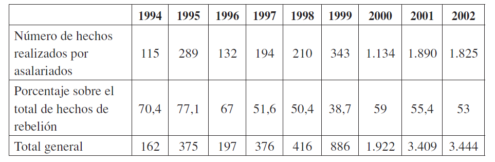 El descontento social se evidencia también en el aumento del número de huelgas desde 1995 (Tabla 1), hecho que además llama la atención por la creciente participación de los desempleados y no asalariados (Galasso, 2005; Iñigo, 2008). La insatisfacción de los gobernados entonces trascendió el ámbito de las demandas de la clase trabajadora para convertirse en un dinamizador de la movilización social. Hacia 1999, el escenario político y social adverso al PJ facilitó que la oposición, representada por la alianza entre la UCR y Frepaso, ganara las presidenciales; sin embargo, ello no implicó un cambio radical en el tipo de políticas tributarias adoptadas, sino más bien un mayor grado de precaución al introducir reformas24.