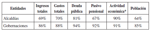 Con base en lo anterior, se obtuvo una muestra de 26 gobernaciones37 y 440 alcaldías38 representativas en términos de ingresos, gastos y otras variables relevantes (Tabla 3).