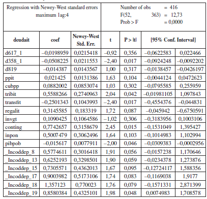 bajo la estimación Newey West41 (Baum, 2006; Wooldridge, 2002). Los resultados de ambos modelos son similares, y las conclusiones entre los dos niveles de gobierno no difieren sustancialmente (Tabla 6).