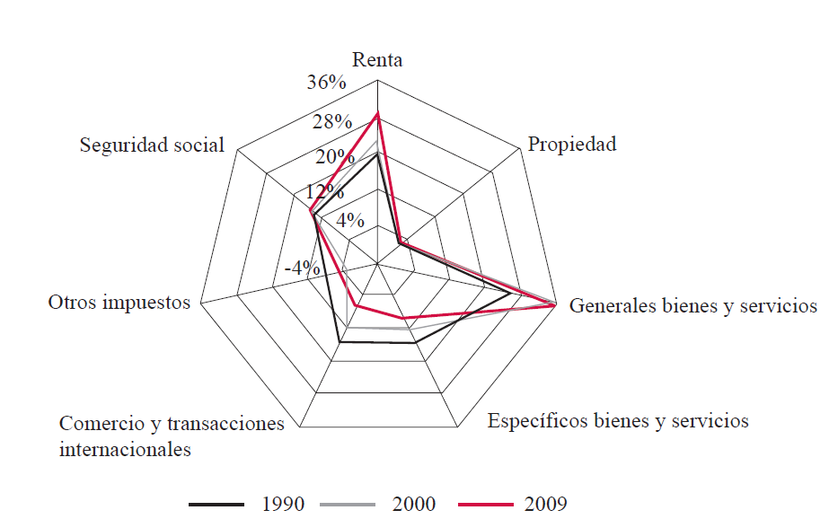 Tras una reforma tributaria, ciertos impuestos deben compensar la reducción de otros y, si es el caso, generar un excedente, lo que, sumado a las restricciones que la globalización supone para las administraciones tributarias, podría explicar la tendencia desde los años noventa a ampliar las bases y unificar las tarifas de los impuestos al consumo interno, en contraste con el desmonte de los impuestos al comercio internacional (es decir, aranceles) y la creación de beneficios para el capital (Castañeda, 2012; Sánchez, 2006).