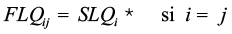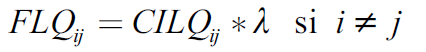 (9)Los coeficientes de localización simple verifican el aporte de la industria de una región con la contribución de la misma industria al total del país, y los coeficientes de localización interindustrial miden, para la región, la importancia relativa de la industria oferente respecto a la industria compradora. A partir de estos, se define el FLQij ajustado como: