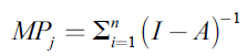 El multiplicador de producto (MP) para cada sector se computa sumando sobre las columnas de la matriz inversa de Leontief: