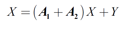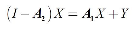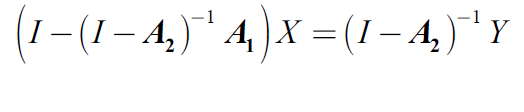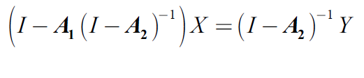 (22)Siendo K1 = (I – A2)-1, K2 = (I – K1A1)-1 y K3 = (I – A1K1)-1 las ecuaciones (21) y (22) pueden presentarse como: