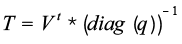 (4)Donde Vt corresponde a la transpuesta de la matriz oferta y q a un vector columna de dimensiones n × 1 que se deriva de la misma matriz. Cada fila de este vector contiene el total de la oferta de cada producto.