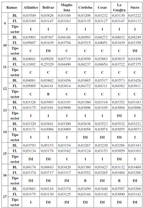 Sin embargo, la región Caribe presenta una débil interrelación intersectorial, reflejada en los bajos multiplicadores de varios de los sectores considerados y en la heterogeneidad de la estructura productiva.