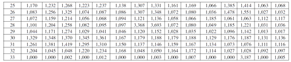 (16)Cada elemento del vector resultante se divide por el coeficiente correspondiente en el vector E para obtener el multiplicador tipo II de empleo para cada industria.