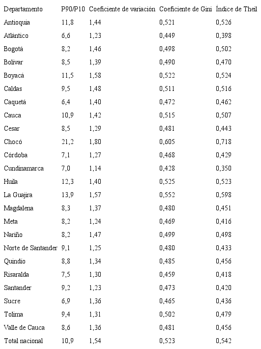 DESIGUALDAD DEL INGRESO EN COLOMBIA: UN ESTUDIO POR DEPARTAMENTOS