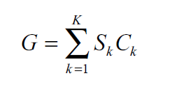 (4)Equation (4) is our benchmark: the Gini coefficient can be decomposed into the sum of the concentration coefficient of each of the K income sources, weighted by its share6 of total income. Our analysis of the evolution of income inequality in Argentina is based on the interaction of the concentration coefficient (=Ck)7 and the relative average participation of each income source (=Sk)8.