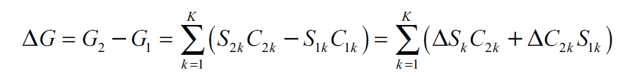 (5)Equation (5) expresses the differences between the Gini coefficients estimated for two distinct periods, isolating the variation due to the concentration and composition effects for each period. The problem with (5) is that it requires the explicit choice of a base year to compute the differences.