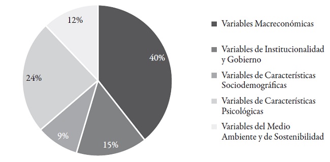 En resumen, la mayoría de los trabajos revisados (40 %) buscan correlaciones (positivas y negativas) entre variables económicas y el nivel de felicidad. El tema menos abordado es el de las características sociodemográficas (Gráfica 1), el cual probablemente cobre importancia en el futuro. Por ejemplo, si se sabe que una política es más efectiva para ciertos rangos de edad o ciertas poblaciones.