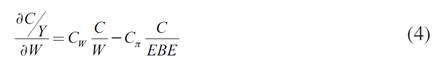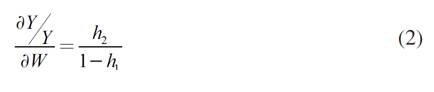 Esta función es muy parecida a la función keynesiana estándar, en la que el ingreso aparece divido entre los salarios y los beneficios. Las elasticidades se convierten en el efecto marginal multiplicando los parámetros estimados (elasticidades) por el peso de cada uno en el consumo,