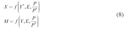 En este caso, las funciones de exportación e importación a estimar serían: