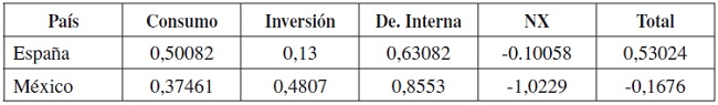 En la Tabla 8, se presentan los resultados obtenidos, tanto para el componente interno de la demanda, como para el efecto total.