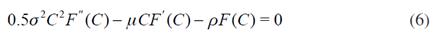 Equation (4) says that a woman’s decision is optimal only if the benefit from holding the option equals the cost of holding it (forgone benefit of exercising the option). This Bellman equation applies for values of C higher than the critical cost -where it is worthwhile postponing childbearing-. The critical cost is the threshold that will be obtained by solving the optimisation problem9. Using Ito’s lemma to expand dF, we obtain: