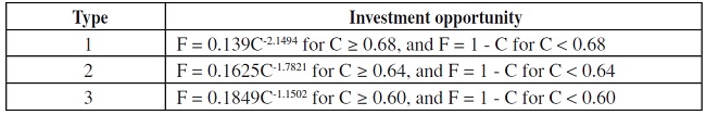 Thus, the investment opportunity F for each type is as in Table 2 (using (10)).
