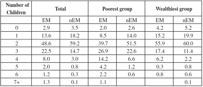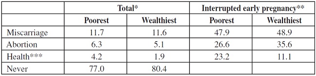 We would also expect for poor women to be more exposed than wealthy women to interrupted pregnancies. The second and third columns of Table 4 confirm this, although the difference between the two groups is not high. The features that most influence the difference are the interrupted pregnancies due to extrauterine pregnancy or fetal death, which are more common among the poorest group.