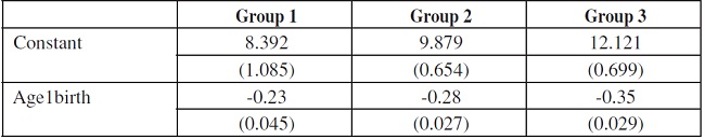 Focusing now on σ, it is reasonable to expect that this might be lower for Type 1 women. The intuition is that for poorer women, the chances of reaching high socioeconomic achievements, including high education levels, are low regardless of the presence of a child; i.e., they experience the lowest uncertainty. In the same line of reasoning, uncertainty on childbearing costs would mainly affect the middle income group: women in this group are assuming a higher risk, since their income might not be enough to bear both childbearing costs and educational costs. As for the wealthier population, given that their income might be sufficient for both child and school, one could expect their uncertainty level to be lower than for the middle group. Still, compared to the poorer population, their uncertainty level should be higher, since there is still rivalry between the time spent in childcare and schooling investment, which for them is potentially high.
