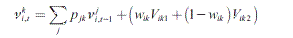 Donde pjk es la probabilidad de que un ciudadano que votó por la coalición j en t 1 vote ahora por la coalición k. Al asumir que el error i ,t se puede escribir utilizando límites simétricos Vik1 y Vik 2 tendremos que la información contenida en los resultados electorales proviene de las transiciones pjk y de los errores ik .