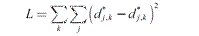 Donde d*j,k es la distancia observada entre las coaliciones j y k y dj ,k es la distancia entre las ubicaciones estimadas de las coaliciones j y k.