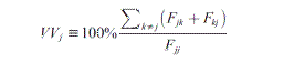 Los resultados de la Tabla 7 sugieren una medida de volatilidad de votos específica para las coaliciones, definida como el valor absoluto de todos los flujos de entrada y salida relativos a los elementos de la diagonal principal de la matriz. La medida de volatilidad VVj para el partido j viene dada por: