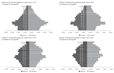 Teniendo en cuenta que existe un rápido aumento de la población de adultos mayores, principalmente mujeres y una rápida reducción de niños (Gráfica 1), se observa una tendencia hacia el envejecimiento de la pirámide poblacional de la localidad, hecho que pone de manifiesto la importancia de prestar atención al fenómeno de pobreza oculta, que afecta en su mayoría a población mayor.