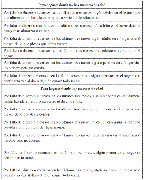 La inseguridad alimentaria es una privación importante entre las dimensiones de bienestar (Martínez y Fernández, 2009; Vélez y Torres, 2014; Wu y Schimmele, 2005). Según la Comisión Económica Para América Latina y el Caribe (CEPAL), presentar niveles de desnutrición asociados a una exposición permanente de inseguridad alimentaria tiene efectos negativos en distintas dimensiones de la vida de las personas “entre las que destacan los impactos en la salud, la educación y la economía (costos y gastos públicos y privados, y menor productividad)”. Estos efectos generan “mayores problemas de inserción social y un incremento o profundización del flagelo de la pobreza e indigencia en la población, reproduciendo el círculo vicioso al aumentar con ello la vulnerabilidad a la desnutrición” (Martínez y Fernández, 2009, p. 6). En relación con los impactos en la salud, Wu y Schimmele (2005) investigan la relación entre la inseguridad alimentaria y el riesgo de depresión entre adultos y encuentran que efectivamente la inseguridad alimentaria aumenta de manera importante el riesgo de sufrir depresión y que este riesgo es mayor para mujeres y padres solteros.