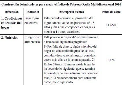 Construcción de indicadores para medir el Índice de Pobreza Oculta Multidimensional 2014