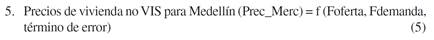 A partir de la teoría económica, la revisión de literatura, el funcionamiento del mercado de vivienda nueva y la información disponible para el sector, en la estimación conjunta del modelo estructural se consideran las ecuaciones (3), (4), (1a), (2a) y (5):