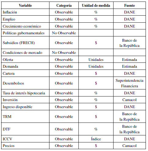 La utilización de este tipo de modelos es el principal elemento diferenciador de este trabajo, ya que permite establecer la interdependencia entre las variables microeconómicas, macroeconómicas, de política pública y de las condiciones del mercado para caracterizar la dinámica que determina el precio de la vivienda nueva. Es de anotar que en la metodología se consideran variables observables y no observables: las no observables hacen referencia a los constructos políticas públicas y condiciones de mercado.