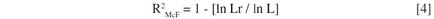 Por otro lado, para tratar de definir en alguna medida la bondad del ajuste en estos modelos de elección discreta, se ha utilizado un coeficiente análogo al R2 de los modelos de regresión convencionales llamado índice de cociente de verosimilitudes o pseudo-R2, como es el caso del R2 de McFadden.