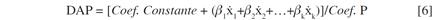 Donde (α) está compuesta por el término constante más el coeficiente de las otras variables multiplicado por el valor medio de la respectiva variable, y (β) es el coeficiente del precio de salida, quedando por tanto que: