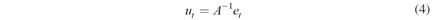 donde C ( L )= A− 1B( L ) es una matriz polinomial y ut son los residuos del modelo en su forma reducida, los cuales se relacionan con los residuos del modelo estructural mediante la siguiente ecuación: