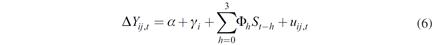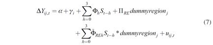 , donde h va desde 0 hasta 3. Estos parámetros muestran las respuestas diferenciales en el impacto de la política monetaria entre la región de interés y el resto del país. Si los signos son negativos y estadísticamente significativos implica que la respuesta en la región ante un choque positivo de tasa de interés tiene un efecto contractivo sobre la actividad productiva estadísticamente mayor que en el resto del país.