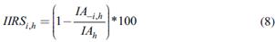 Para obtener una medida de los efectos sectoriales de la política monetaria en Colombia, y los países en desarrollo en general, existen dificultades con la información disponible similares a las que se presentan para la evaluación de los impactos regionales. En este trabajo se busca superar este limitante y obtener por primera vez una medida de los efectos de la política monetaria en los distintos sectores de la economía colombiana. Para ello se parte también de la estimación por mínimos cuadrados ponderados de la ecuación (6) con los datos de las 1.155 unidades de análisis consideradas (35 sectores en 33 departamentos), lo cual ofrece una medida de los impactos promedio de la política monetaria sobre la actividad productiva en todos los sectores y departamentos del país. Posteriormente, se hacen nuevas estimaciones de la misma ecuación haciendo cero la ponderación del sector de interés en todos los departamentos del país, o lo que es lo mismo, estimando nuevamente el panel de la ecuación (6) excluyendo los subsectores que conforman el sector que se quiere evaluar. Con los resultados de las nuevas funciones de impulso respuesta, obtenidas para Colombia, se calcula para cada horizonte de tiempo h el siguiente índice de impacto relativo sectorial (IIRS) de la política monetaria en el sector i de la economía Colombia: