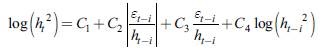 . Por tanto, se asume que el término error tiene una varianza condicional que sigue el siguiente proceso: